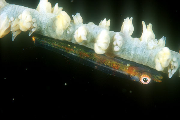 このハゼのムチヤギは、崖の底から生えており、しかもハゼも行儀よく低いところにいてくれて、底に膝をついての撮影が可能でした。